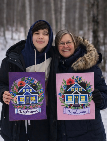 Furry Friends Paint Night For 2 Framed artwork of two foxes in a natural setting