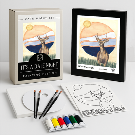 Forget dinner-and-a-movie. This is the date night you’ll both remember. Designed for two, each kit transforms an ordinary evening into a shared adventure of laughter, color, and connection. Together, you’ll create a your own versions of the limited-edition artwork included in your kit. An evening spent painting beautiful moments together.