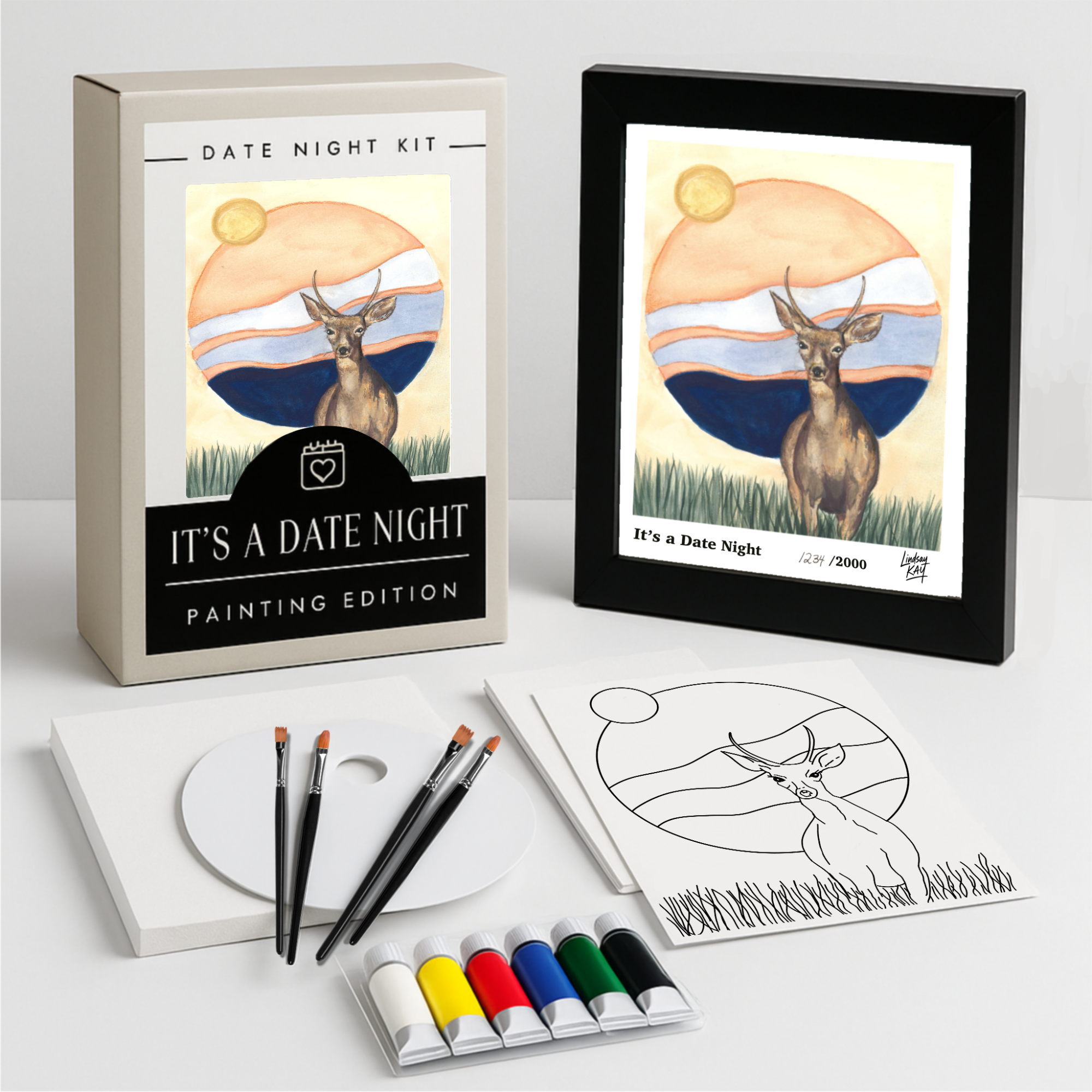 Celebrate the quiet beauty of Canada’s wilderness with our Deer Paint Kit, part of The Wild Collection. Inspired by real wildlife photographed in northern Alberta, this kit showcases the elegance of the mule deer, complete with a limited-edition print and everything you need for a creative evening—canvases, premium paints, brushes, palettes, and a step-by-step color-mixing guide. No stress, no planning—just open the box and enjoy a cozy evening filled with creativity, connection, and the majesty of the wild.
